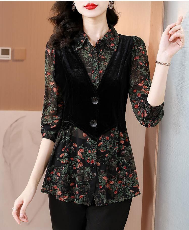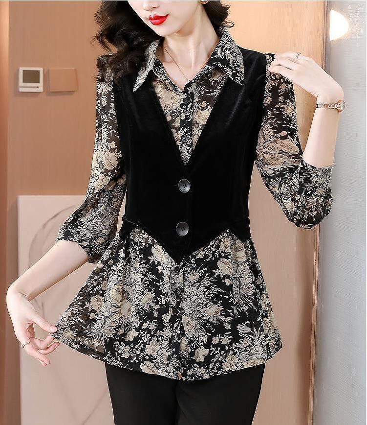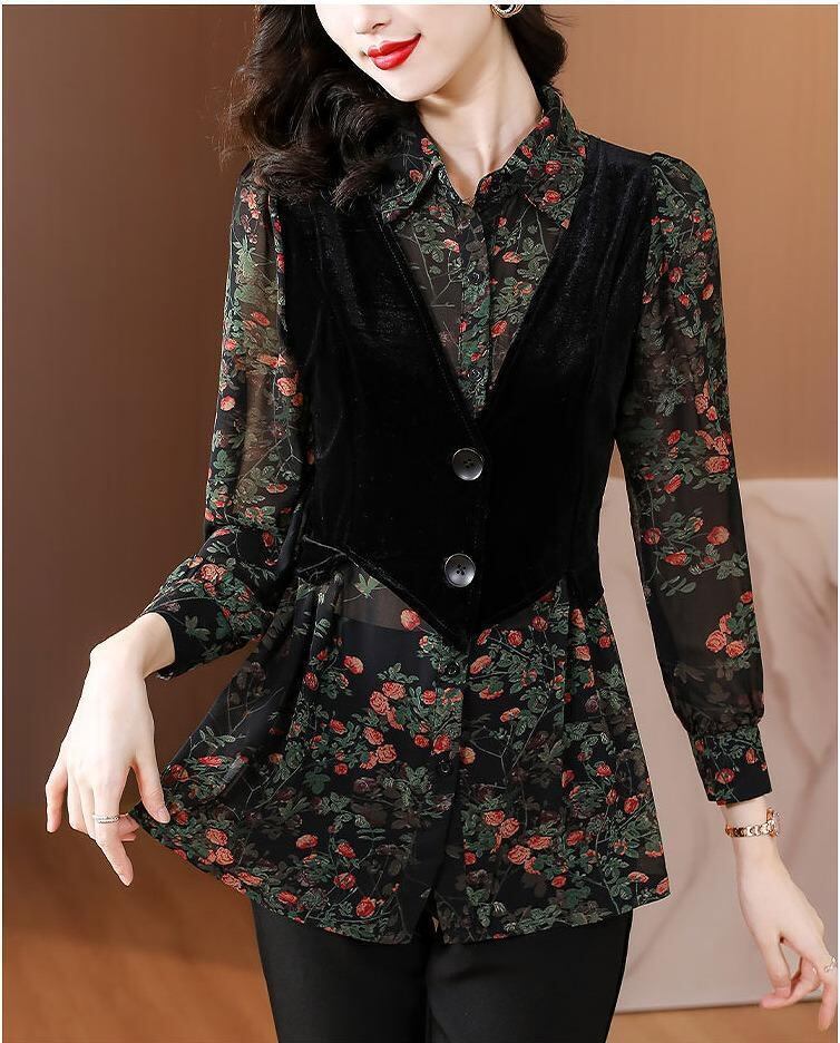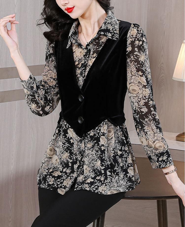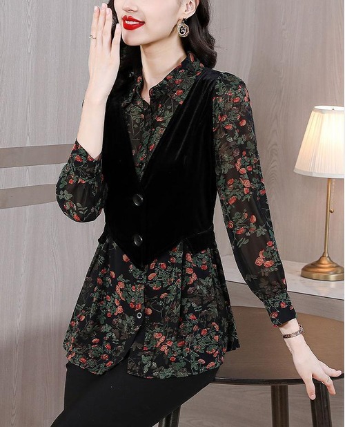 大きいサイズ レディース トップス 重ね着風 ブラウス 春 秋冬 新品 長袖