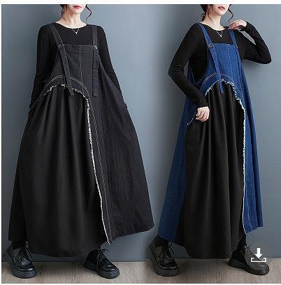 大きいサイズ レディース サロペット ワンピース ロング デニム 春 秋冬 新品