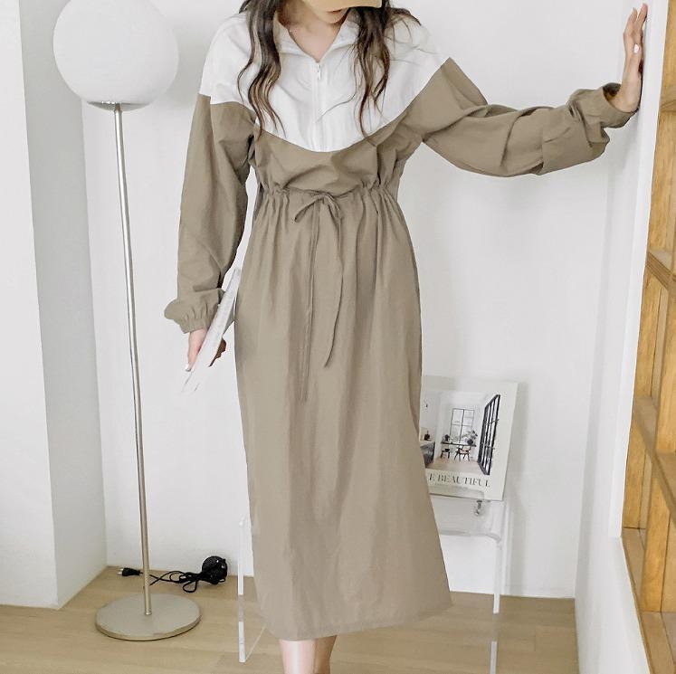 大きいサイズ レディース ロング ワンピース カーキ 春 秋冬 新品 長袖