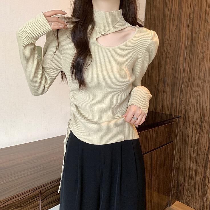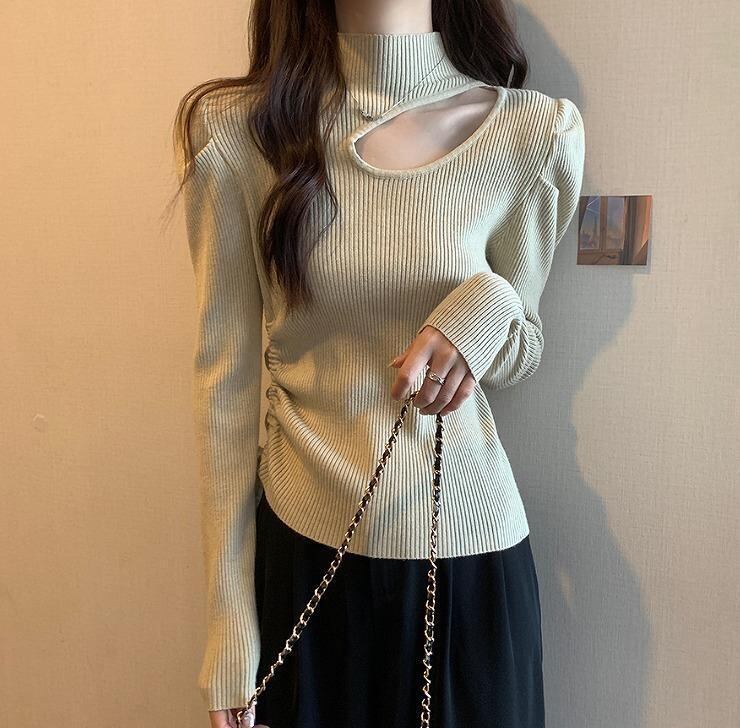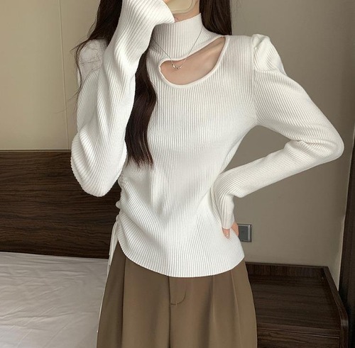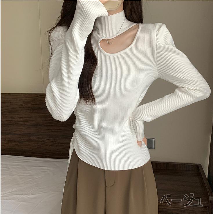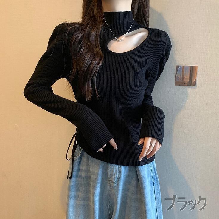 大きいサイズ レディース トップス ニット ハイネック 春 秋冬 新品 長袖 肌見せ