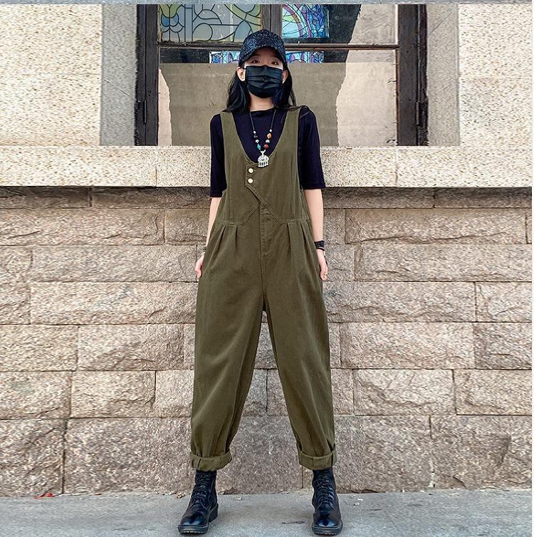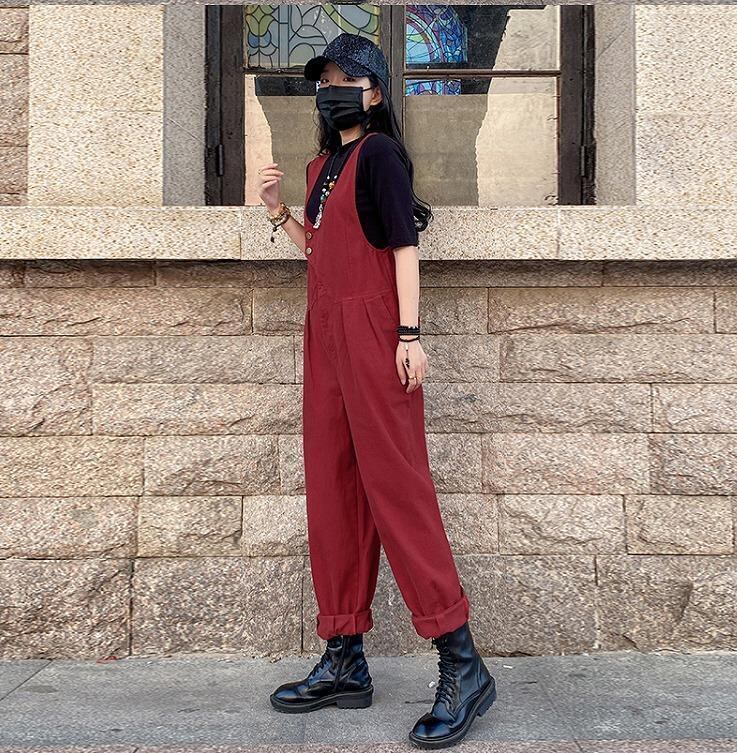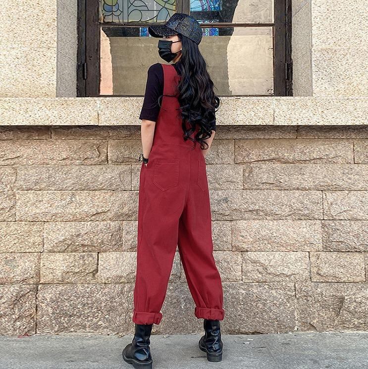 大きいサイズ レディース サロペット パンツ オーバーオール 春 秋冬 新品 カーキ レッド