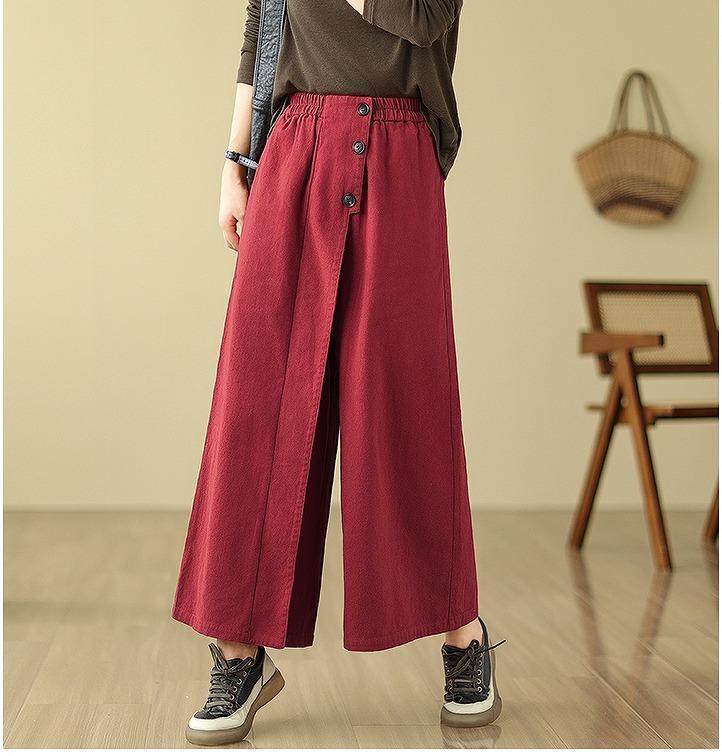 大きいサイズ レディース ワイドパンツ ガウチョパンツ春 秋冬 新品 レッド ブラウン 楽ちん