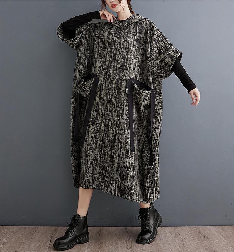 大きいサイズ レディース ロング パーカー ワンピース ゆったり 春 秋冬 新品 フード付き