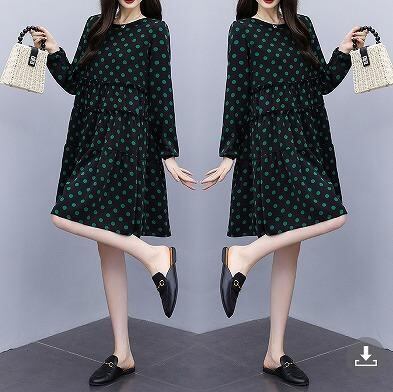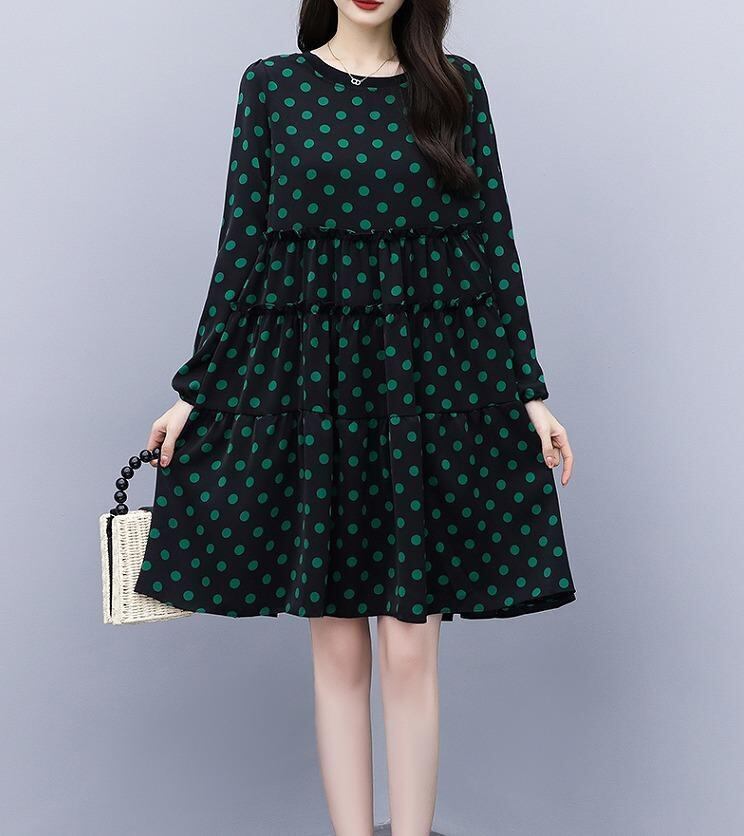 大きいサイズ レディース ワンピース チュニック ドット柄 春 秋冬 新品 長袖