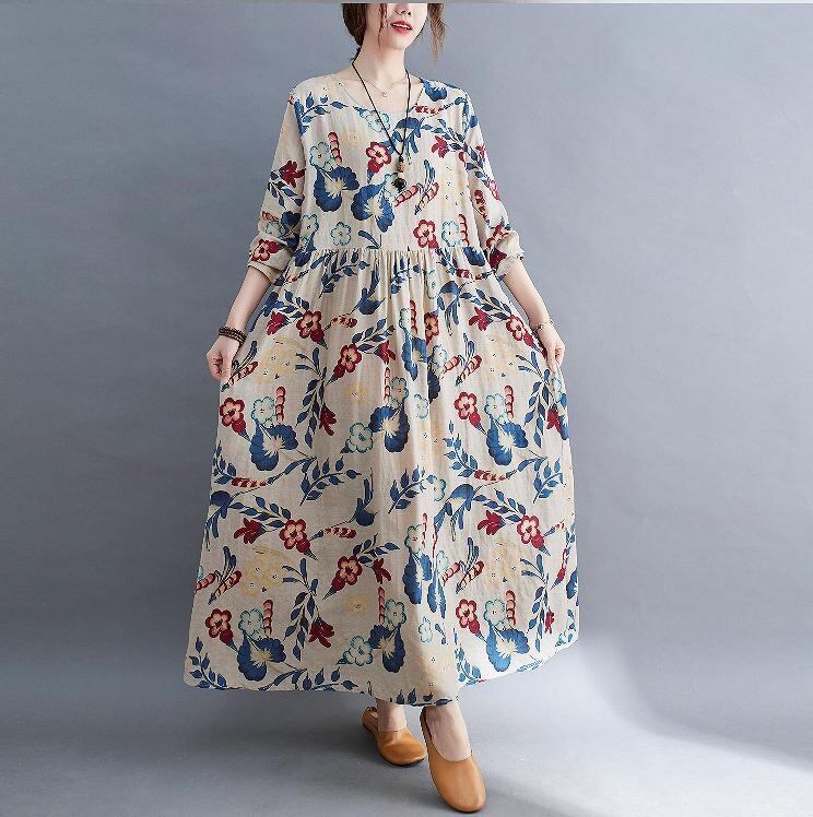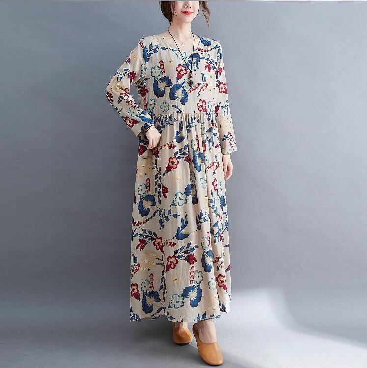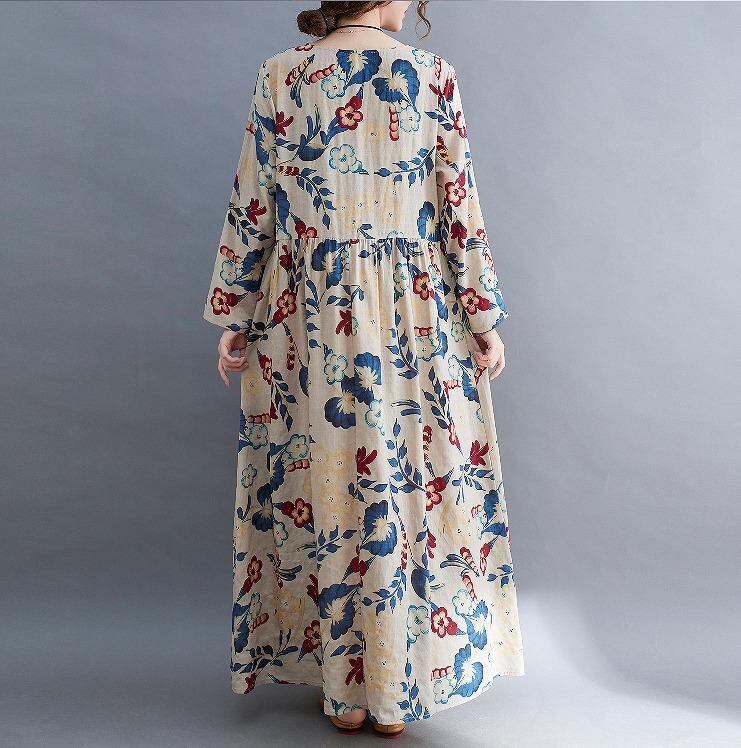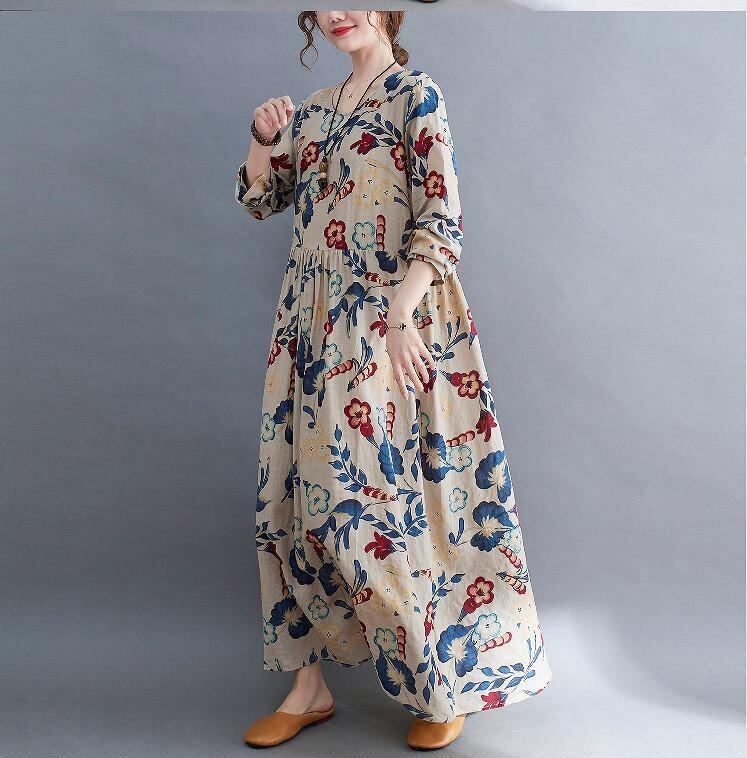 大きいサイズ レディース ロング ワンピース 花柄 春 秋冬 新品 長袖