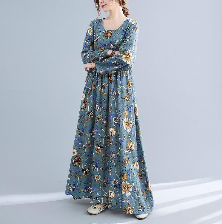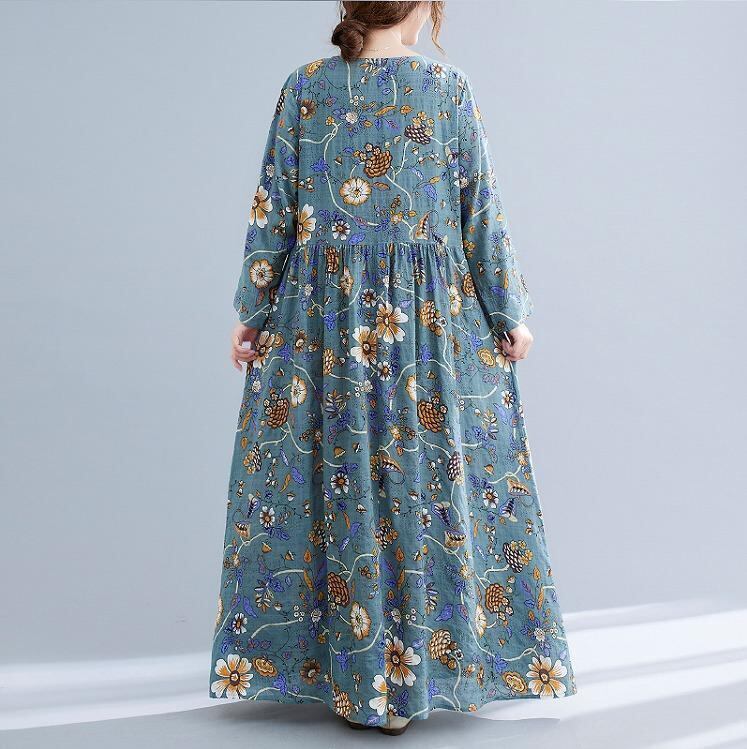 大きいサイズ レディース ロング ワンピース 花柄 春 秋冬 新品 長袖