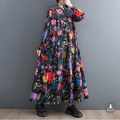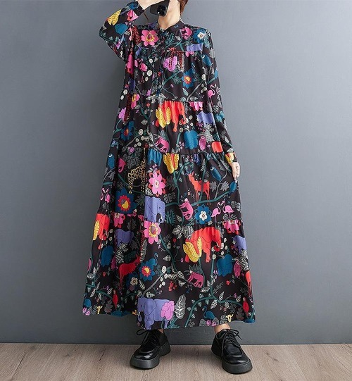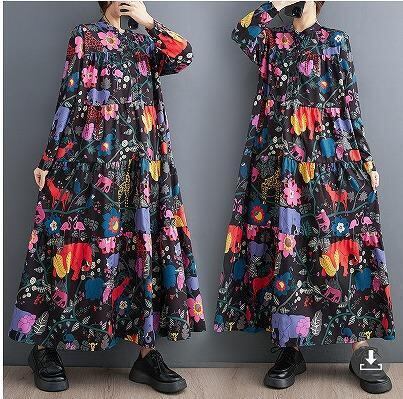 大きいサイズ レディース ロング ワンピース 花柄 春 秋冬 新品 長袖