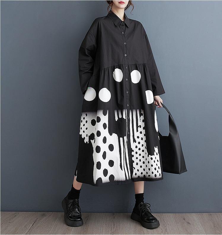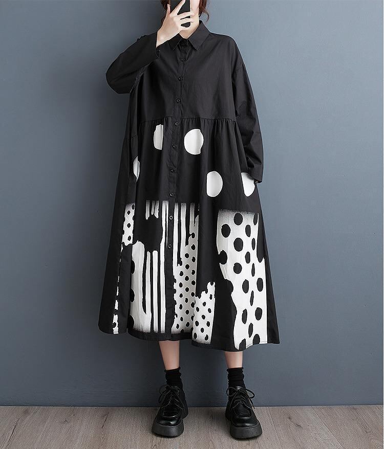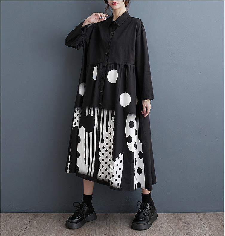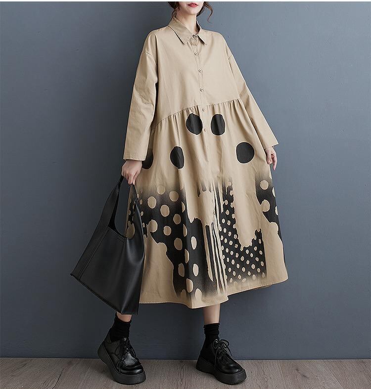 大きいサイズ レディース ワンピース ロング ドット 春 秋冬 新品 長袖