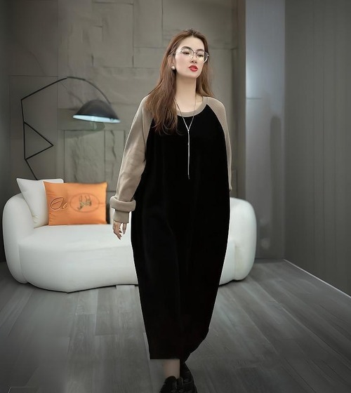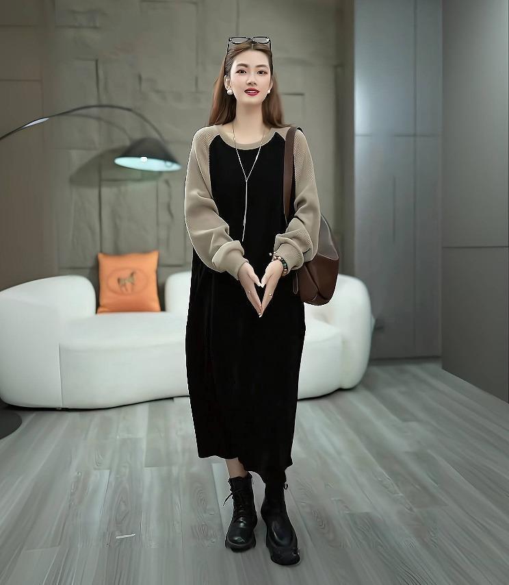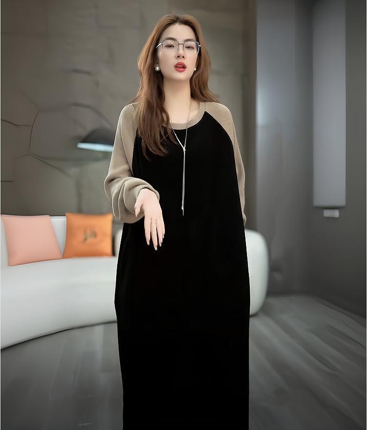 大きいサイズ レディース ワンピース ゆったり バイカラー 春 秋冬 新品 長袖