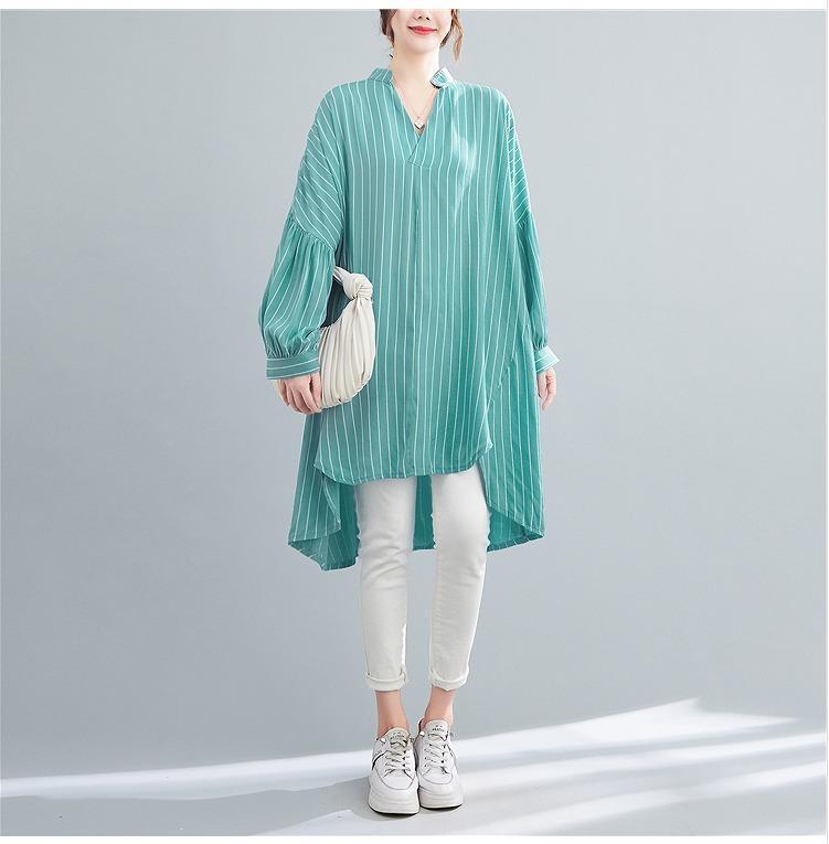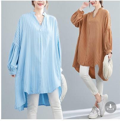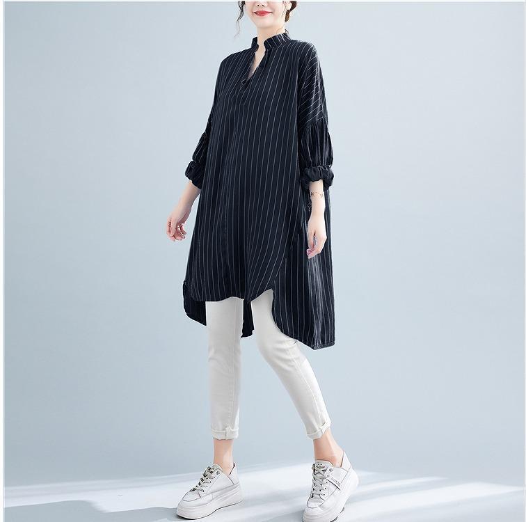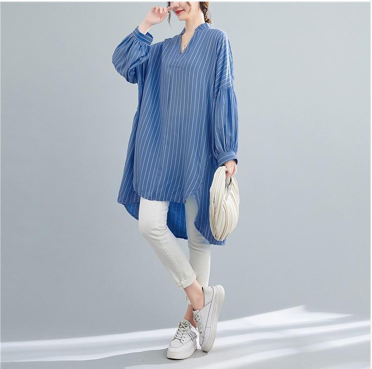 大きいサイズ レディース ロング シャツ トップス 春 秋冬 新品 長袖 ライン