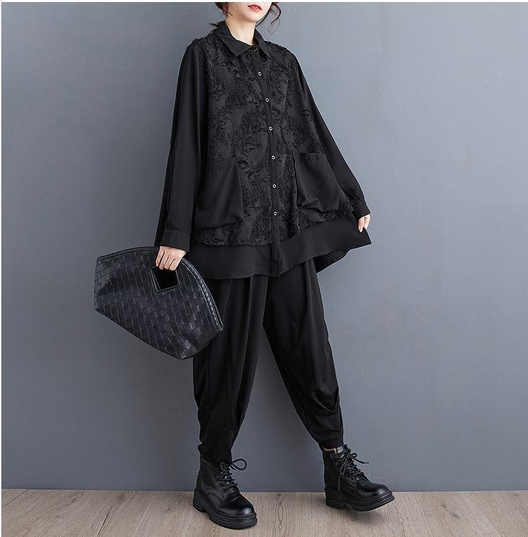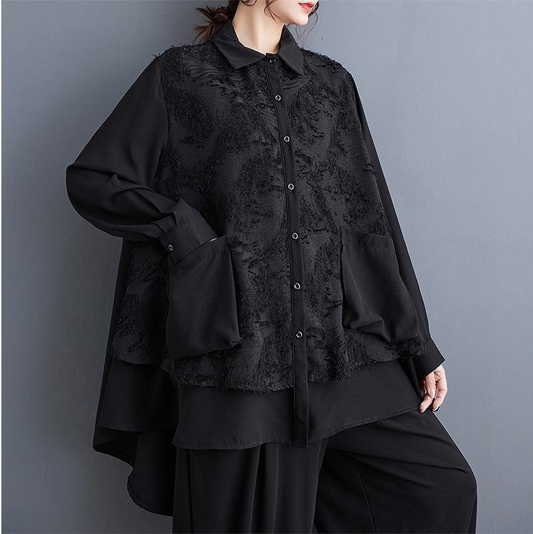 大きいサイズ レディース トップス シャツ ブラック 春 秋冬 新品 長袖