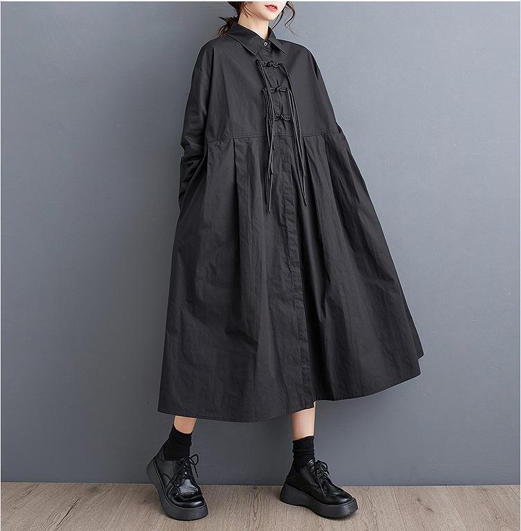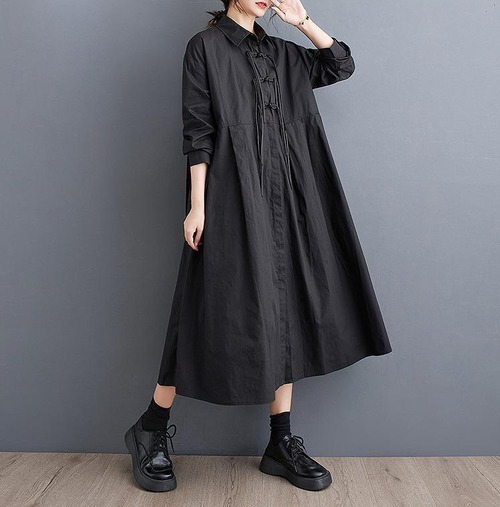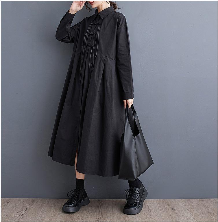 大きいサイズ レディース ロング ワンピース ゆったり 春 秋冬 新品 長袖 ブラック