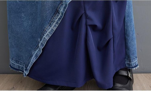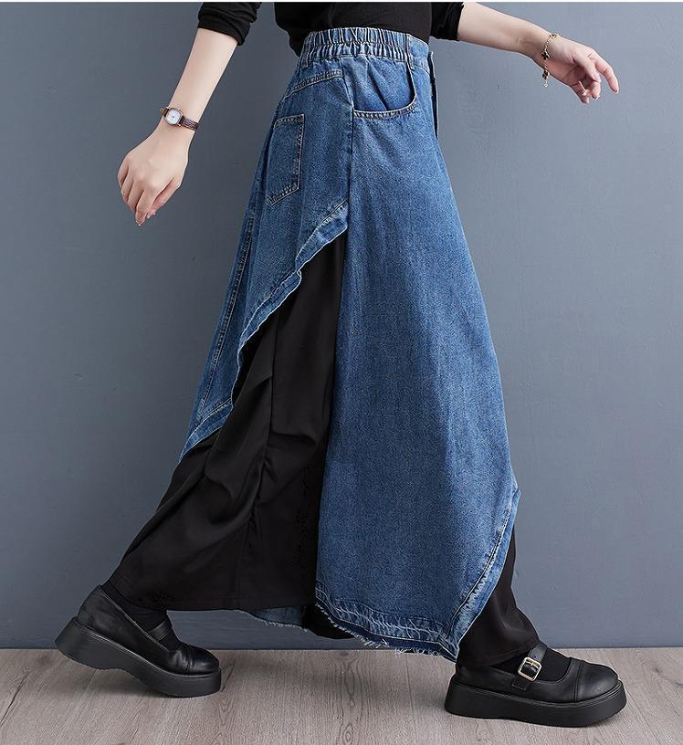 大きいサイズ レディース デニム スカート 異素材 ロング 春 秋冬 新品