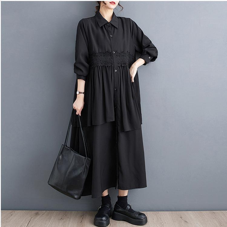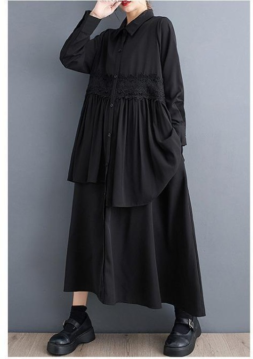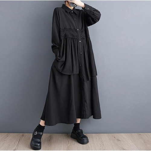大きいサイズ レディース ロング ワンピース 春 秋冬 新品 長袖 重ね着風