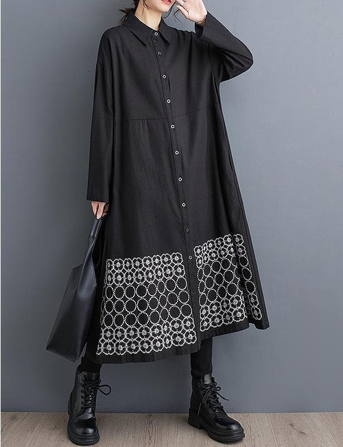 大きいサイズ レディース ロング ワンピース シャツ 春 秋冬 新品 長袖
