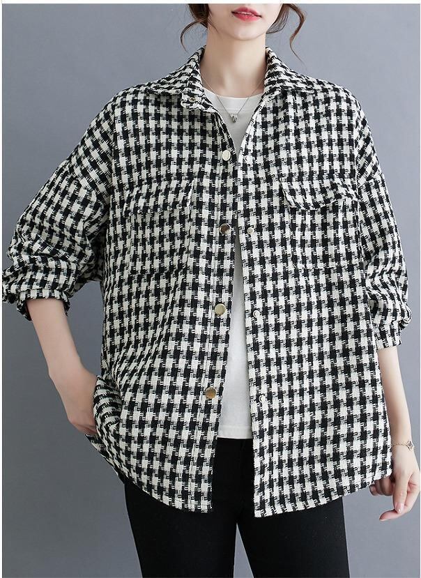 大きいサイズ レディース トップス シャツ 千鳥格子 春 秋冬 新品 長袖 チェック柄