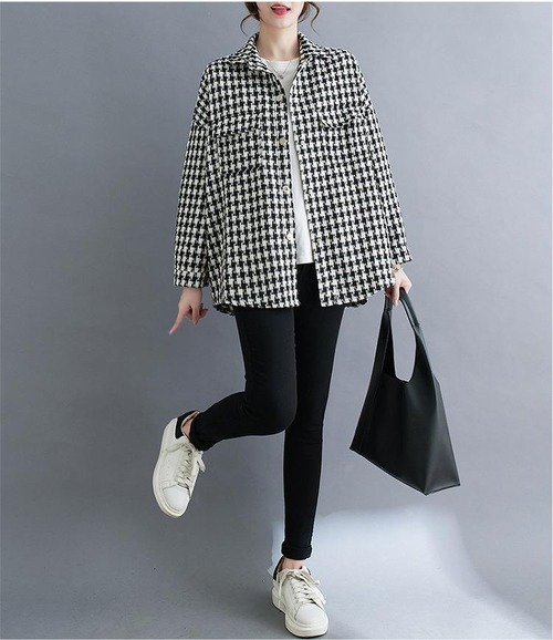 大きいサイズ レディース トップス シャツ 千鳥格子 春 秋冬 新品 長袖