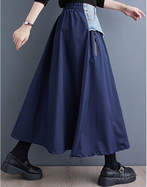 大きいサイズ レディース ロング スカート デニム 異素材 春 秋冬 新品