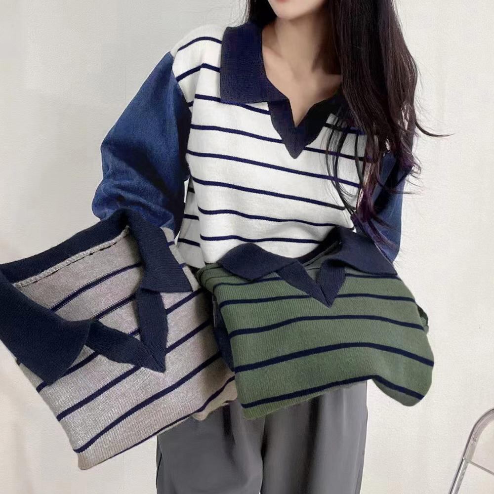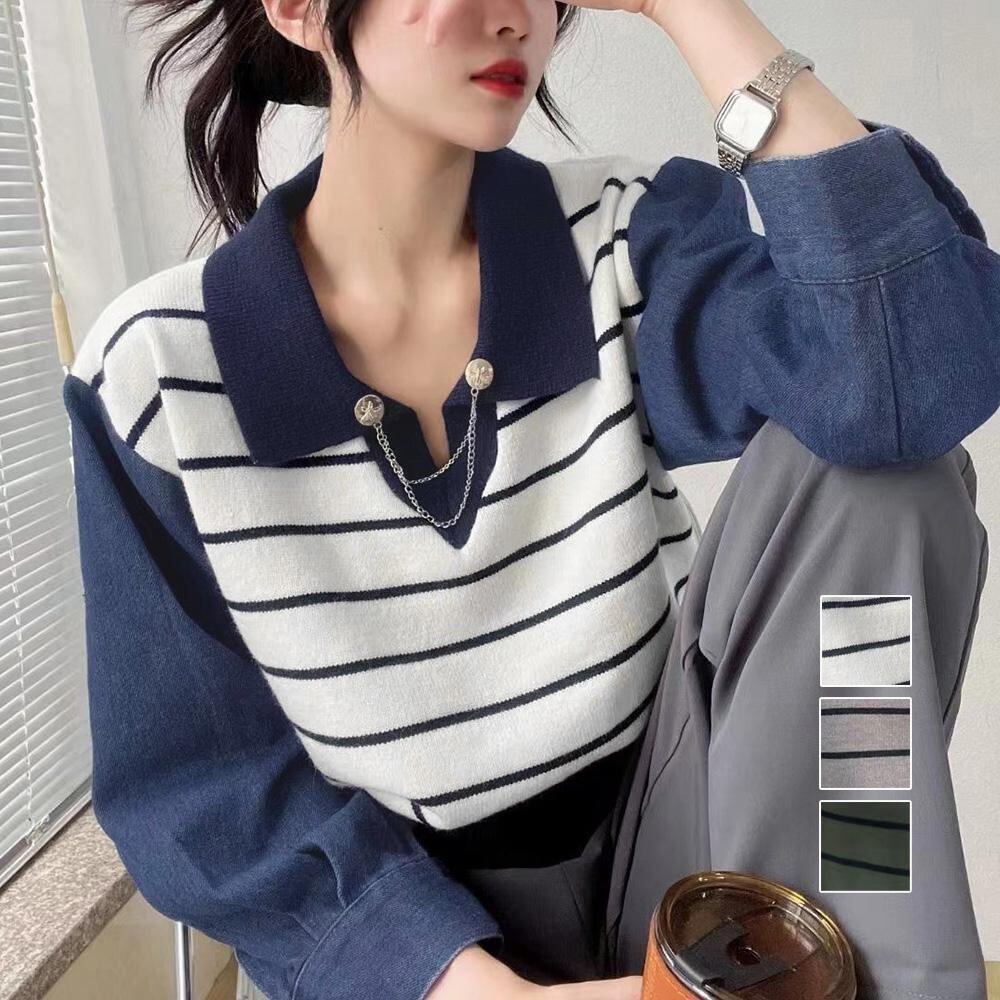 フリーサイズ #もちろん国内発送 韓国 古着 新作 おおきいさいず ぽっちゃり 可愛い セール 値下 レトロ #レディース大きいサイズ ジェンダーレス #夏服 新品 送料込み 原宿 #離島沖縄でも追加料金は不要です #s7 レディース大きいサイズレディース #春服 #ゆったり #静岡県以外からの発送は返金します 送料無料 #大きいサイズ 春物 秋物 ゆったり アウター #オーバーサイズ デニム切り替え ニットトップス 襟付き 長袖 ニットプルオーバー レディース カジュアル ニットウェア おしゃれ 韓国