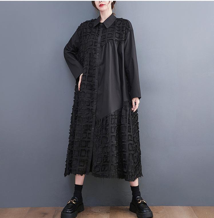 大きいサイズ レディース ロング ワンピース シャツ 春 秋冬 新品 長袖 前開き