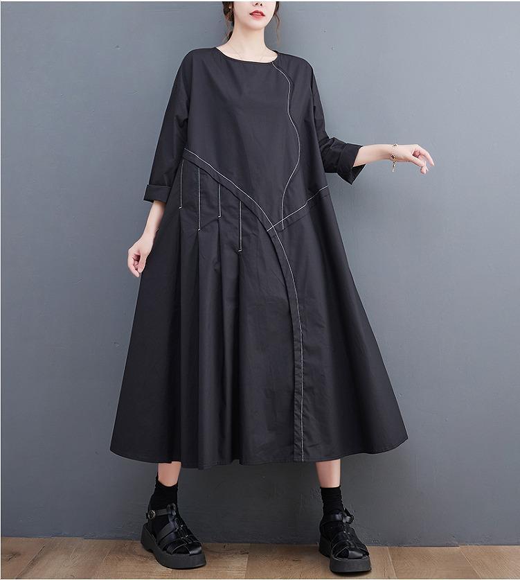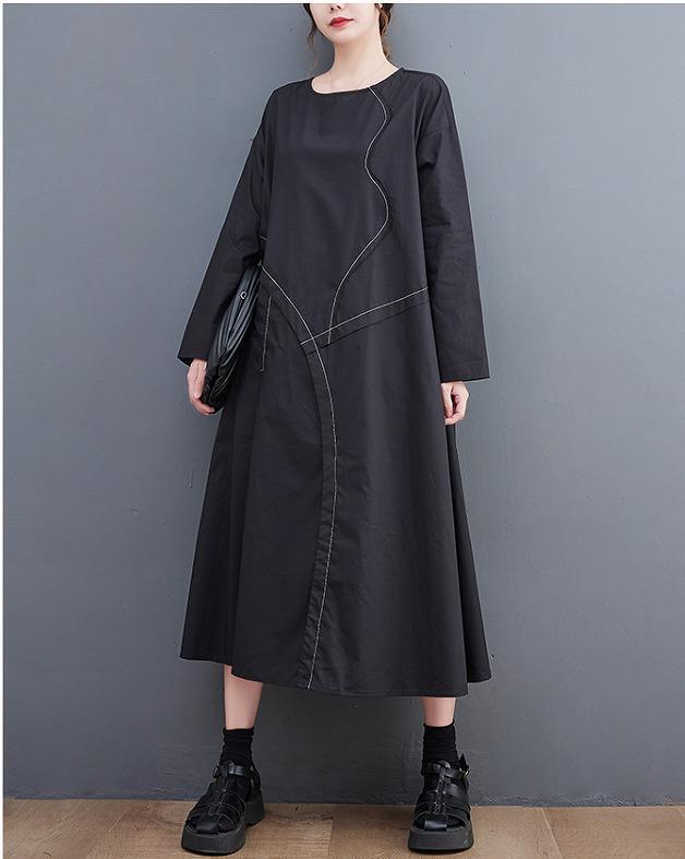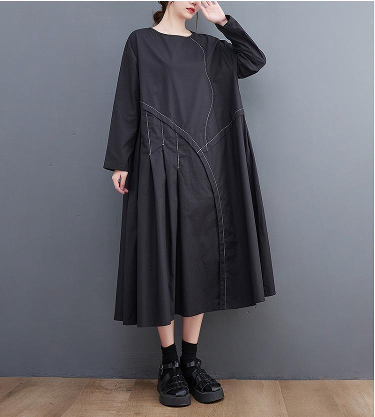 大きいサイズ レディース ロング ワンピース ゆったり 春 秋冬 新品 長袖 ブラック