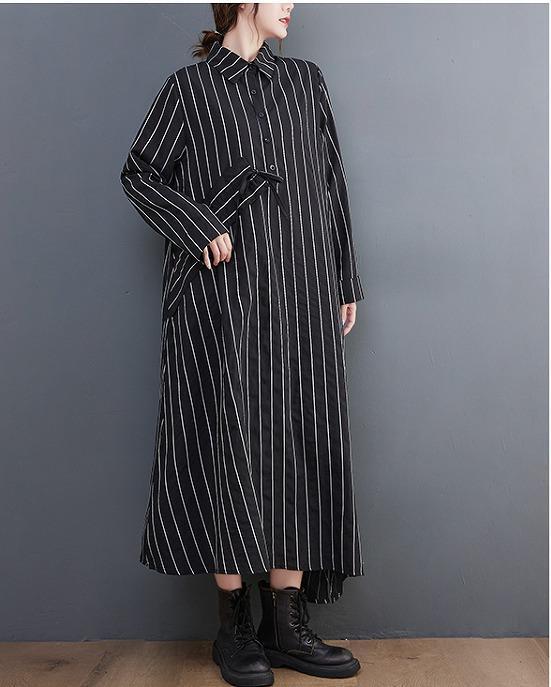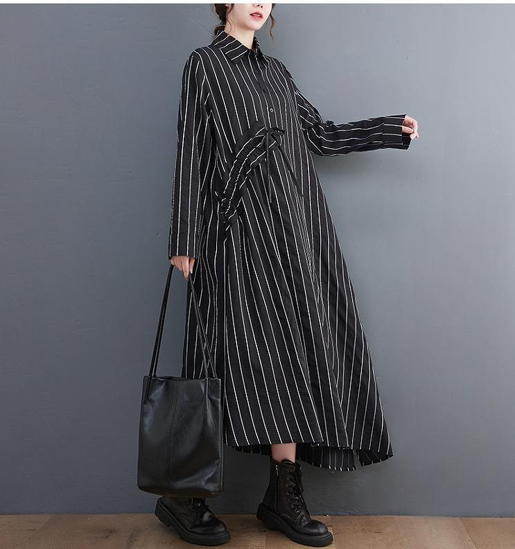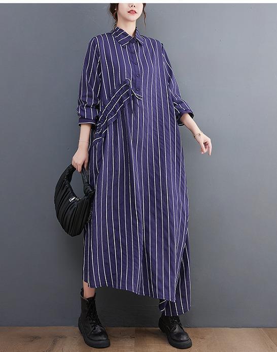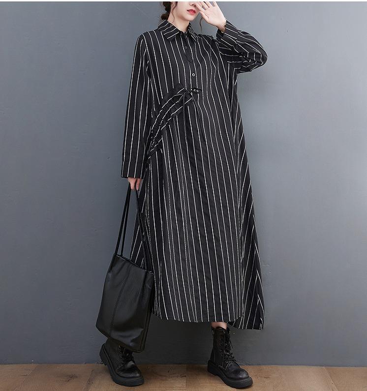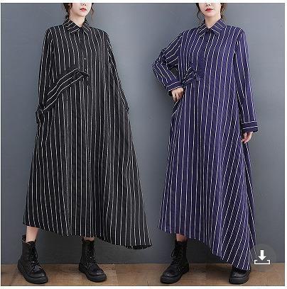 大きいサイズ レディース ロング ワンピース ストライプ 春 秋冬 新品 長袖 シャツ