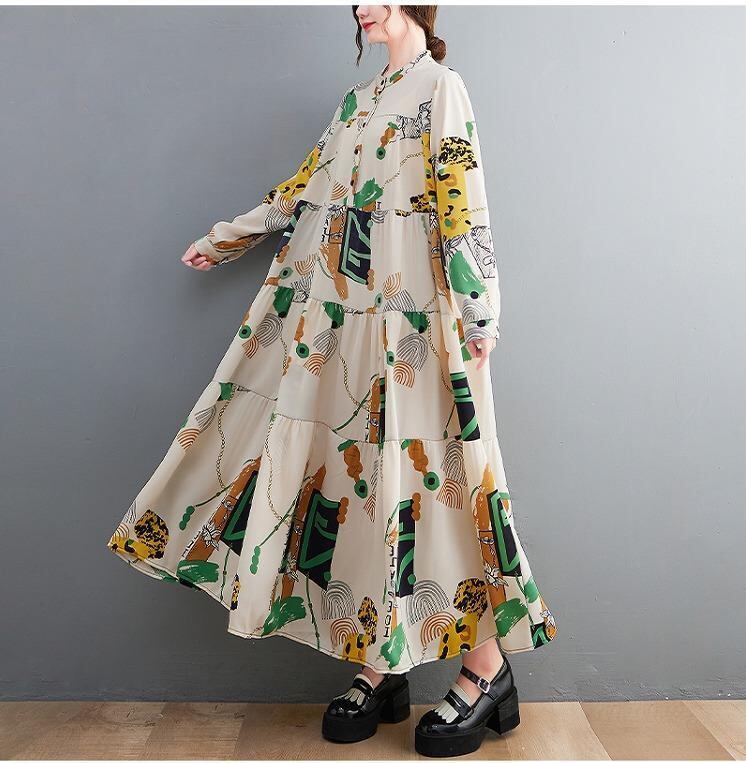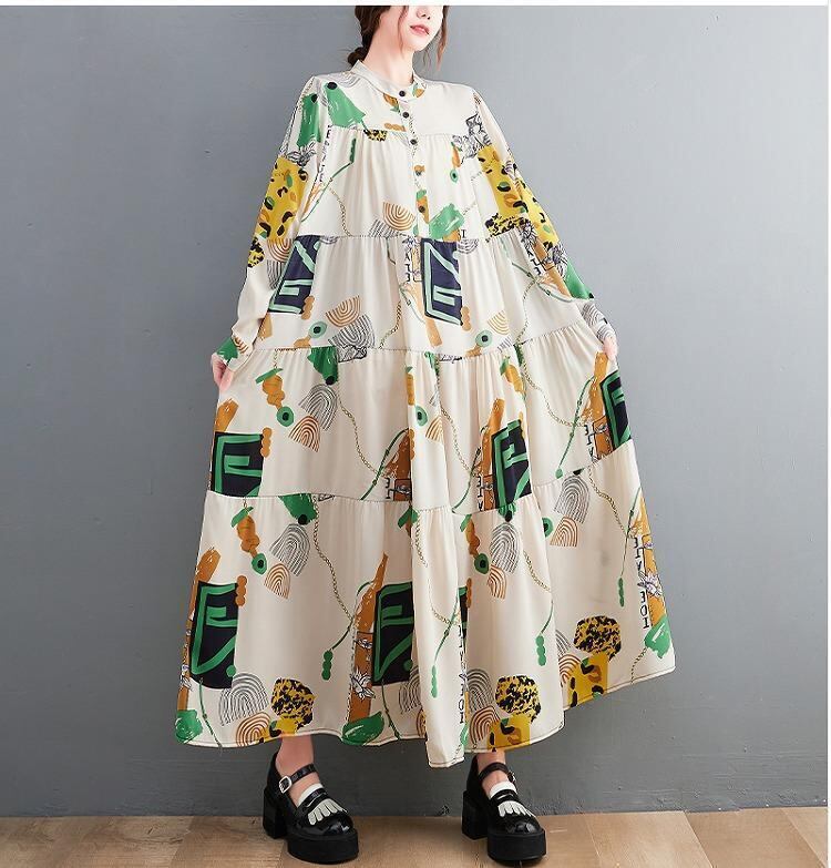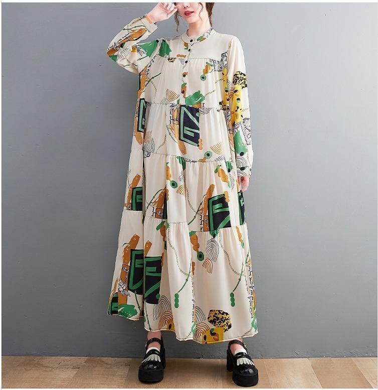 大きいサイズ レディース マキシ ワンピース ロング 春 秋冬 新品 長袖 ゆったり シャツ