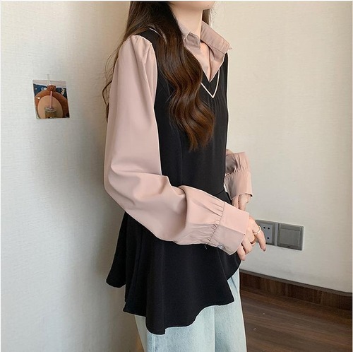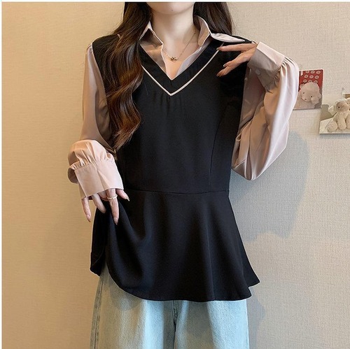 大きいサイズ レディース トップス シャツ 重ね着風 春 秋冬 新品 長袖