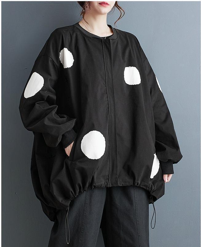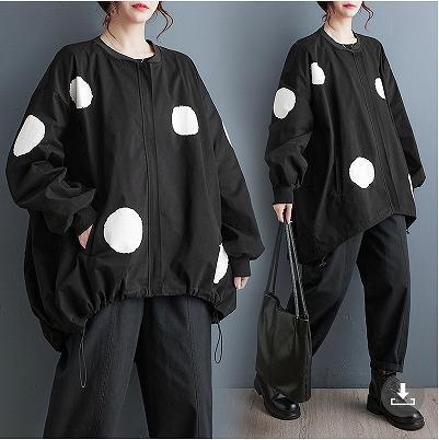 大きいサイズ レディース アウター コート ドット 春 秋冬 新品 長袖 ゆったり ジップアップ
