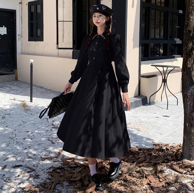 大きいサイズ レディース ロング ワンピース 春 秋冬 新品 長袖 レッド ブラック