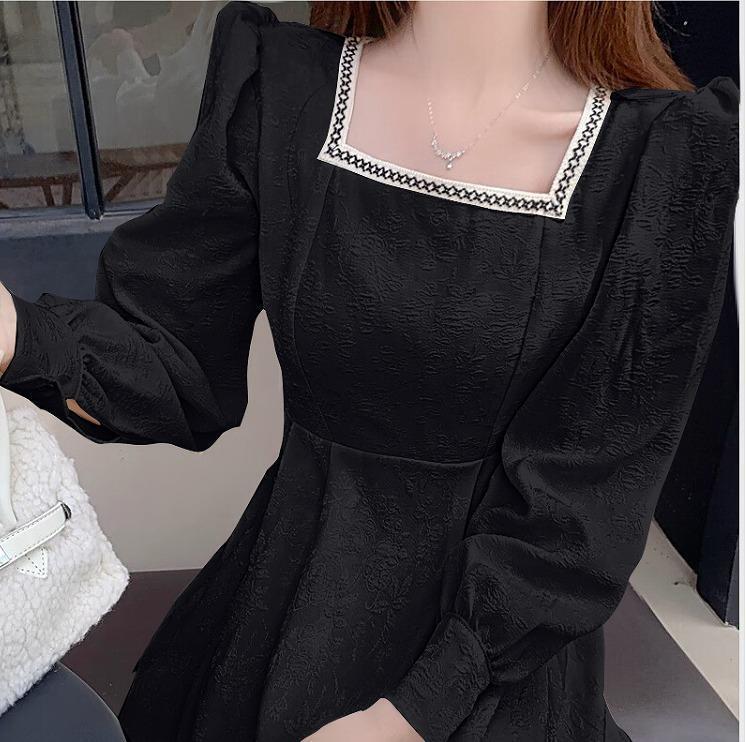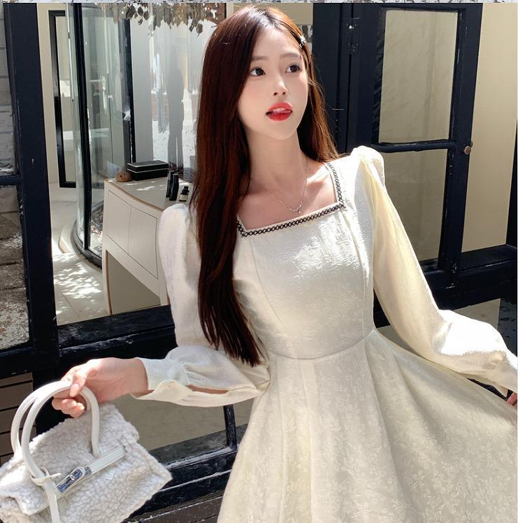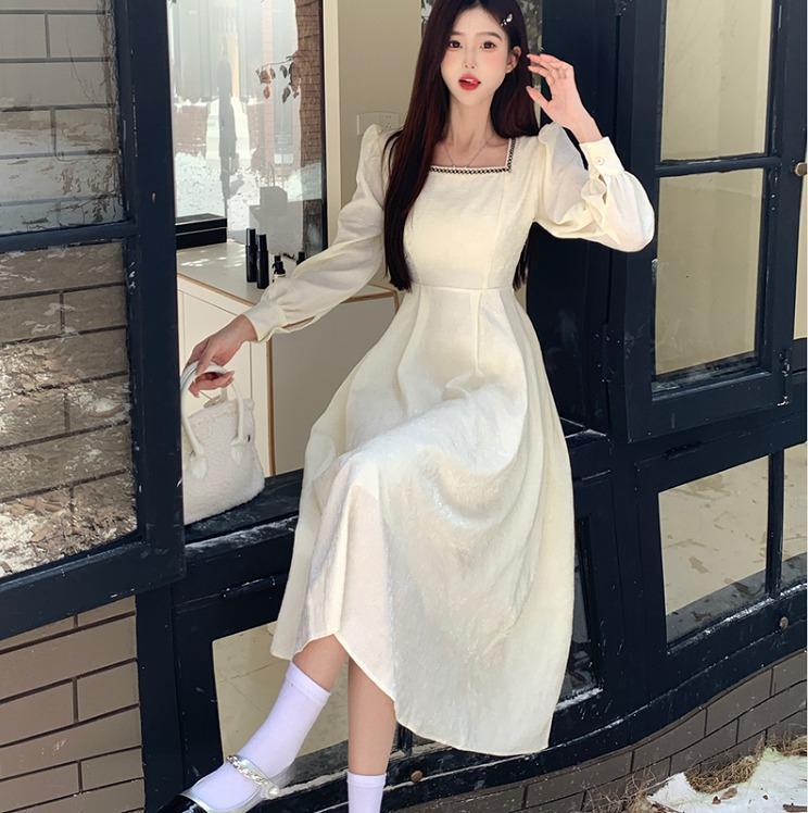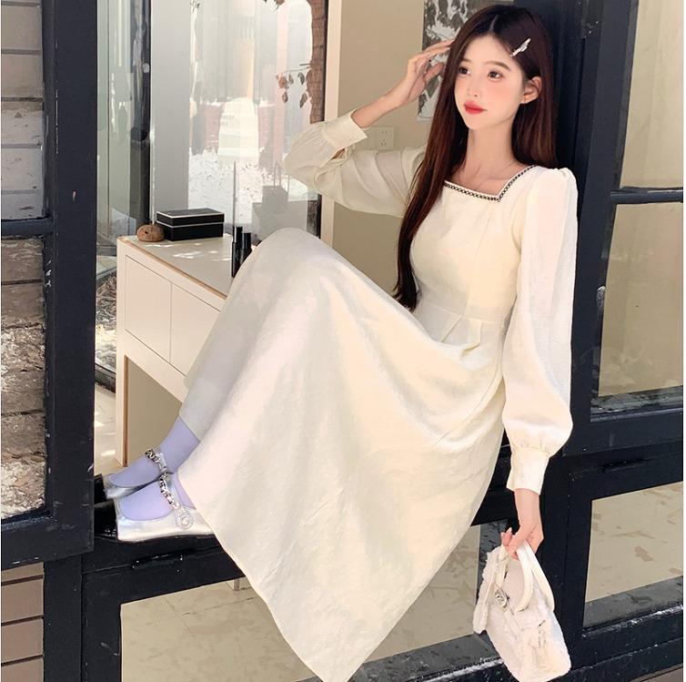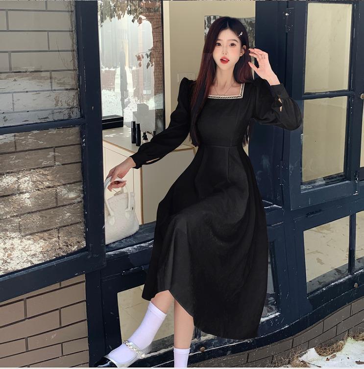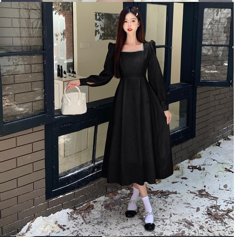 【大きいサイズ有】 レディース ワンピース スクエアネック 春 秋冬 新品 長袖 ドレス 清楚