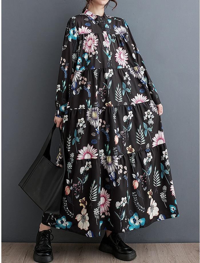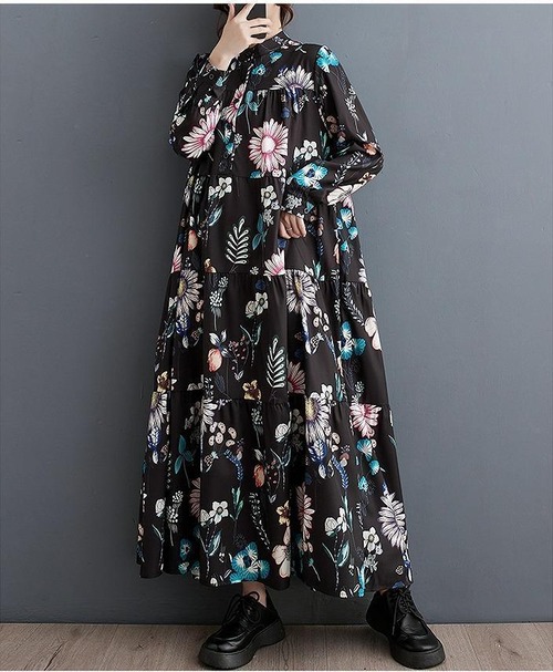 【大きいサイズ】 レディース 花柄 ワンピース 春 秋冬 新品 長袖 ゆったり Aライン