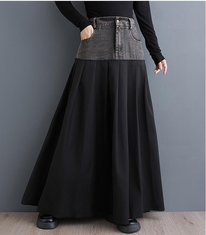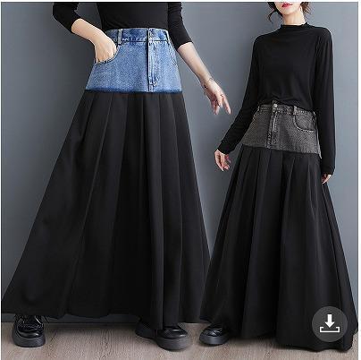 【大きいサイズ】 レディース ロング スカート 異素材 春 秋冬 新品 デニム