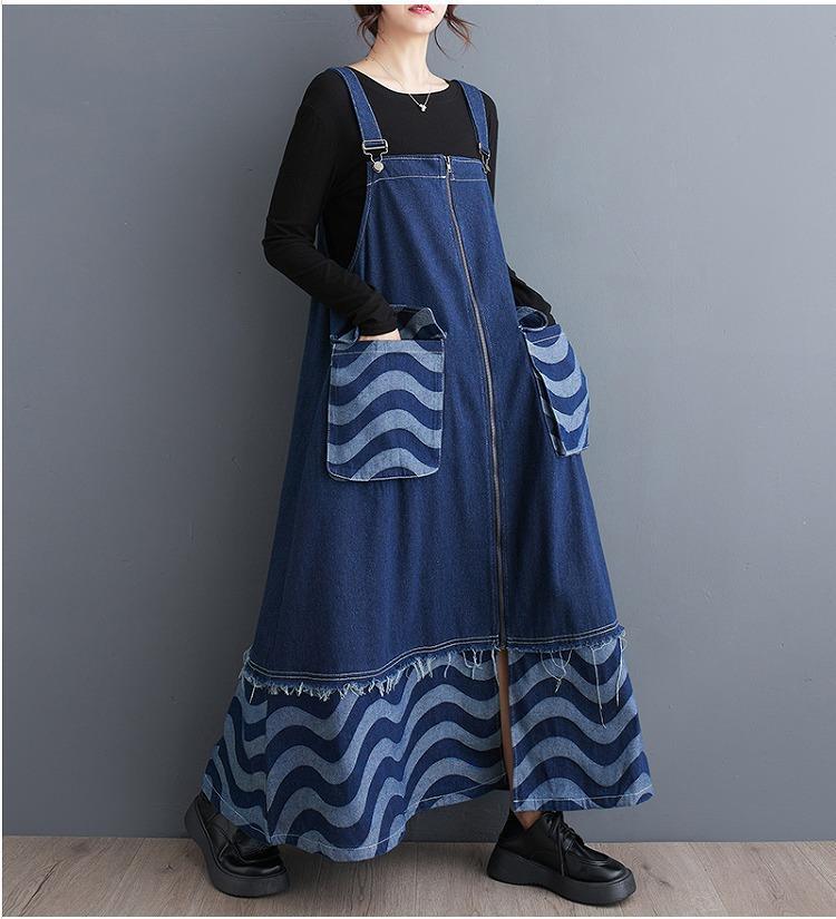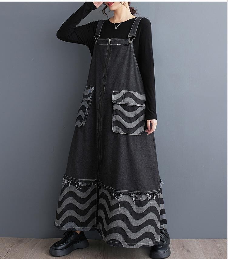 【大きいサイズ】 レディース サロペット ワンピース ロング 春 秋冬 新品 デニム ゆったり