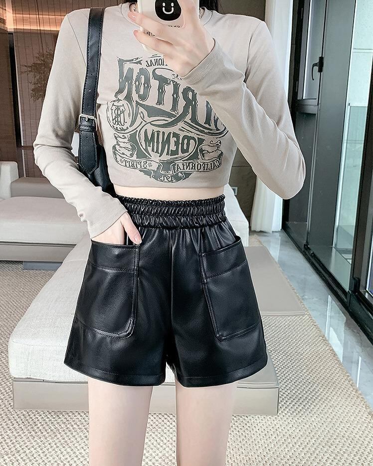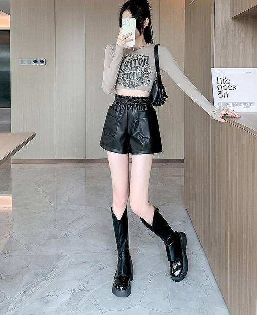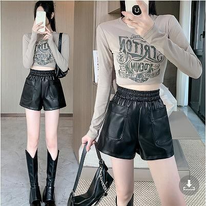 【大きいサイズ有】 レディース ショートパンツ エコレザー フェイクレザー 春 秋冬 新品 レザー調