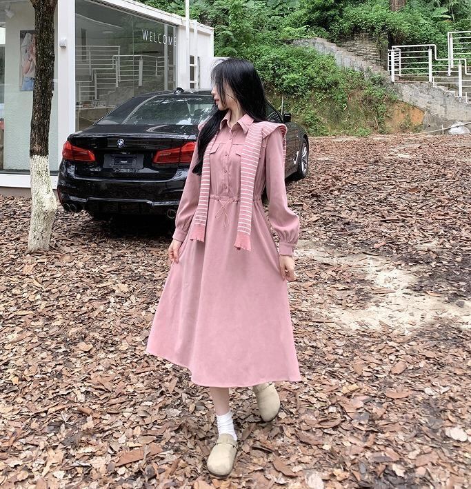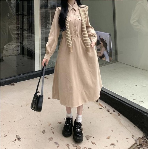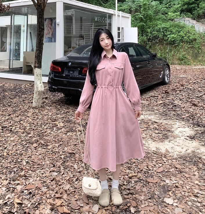 【大きいサイズ】 レディース ワンピース 春 秋冬 新品 長袖 ピンク カーキ