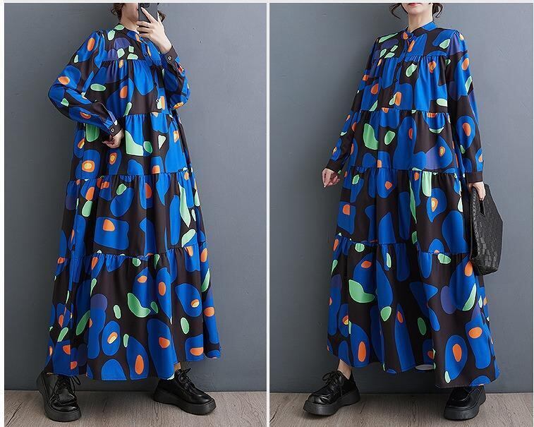 【大きいサイズ】 レディース ロング ワンピース ブルー 春 秋冬 新品 長袖