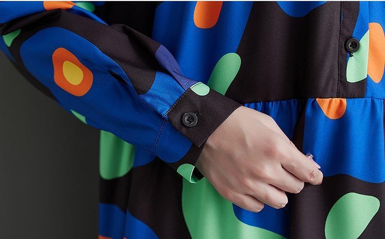 【大きいサイズ】 レディース ロング ワンピース ブルー 春 秋冬 新品 長袖 Aライン シャツ