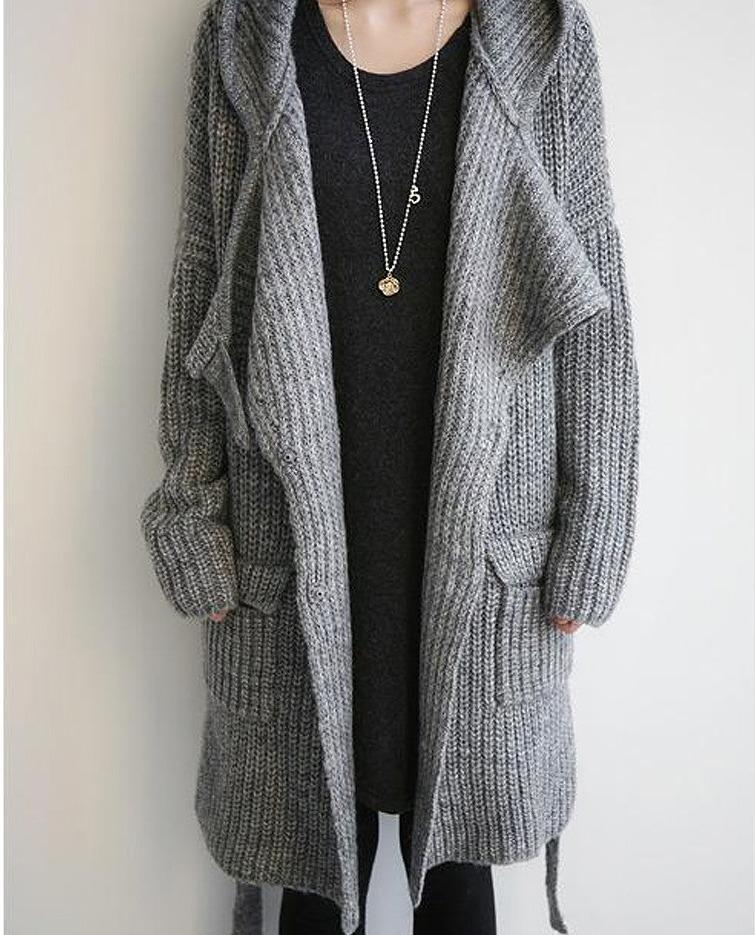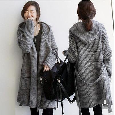 【大きいサイズ】 レディース フード付き ニット カーディガン 春 秋冬 新品 長袖 パーカー ロング