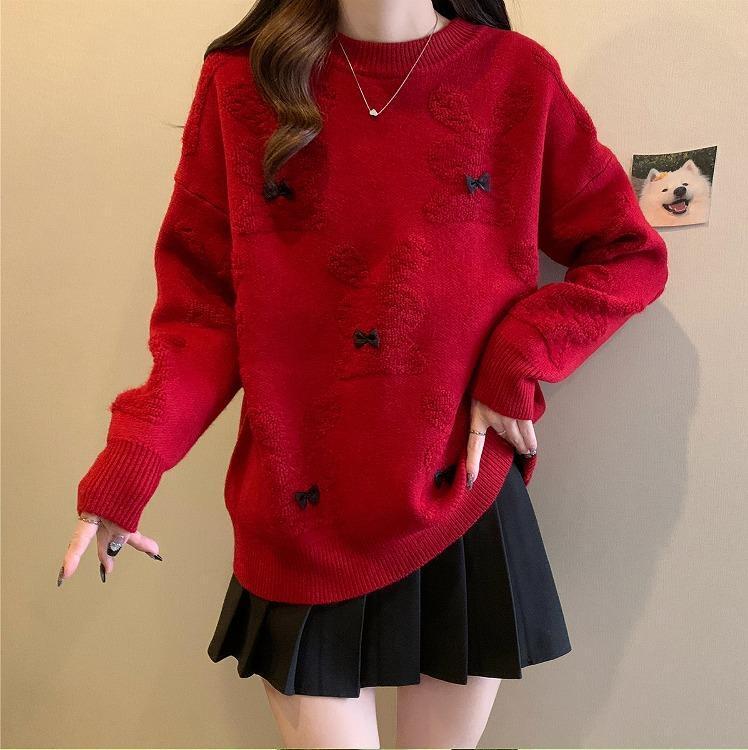【大きいサイズ有】 レディース ニット トップス ウサギ 春 秋冬 新品 長袖 レッド リボン うさぎ