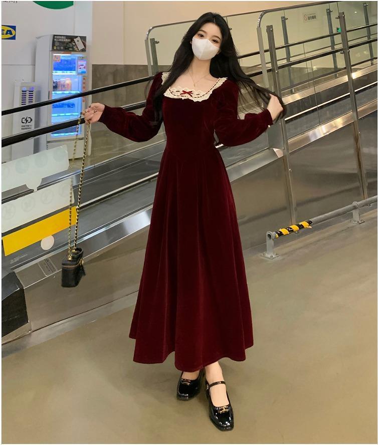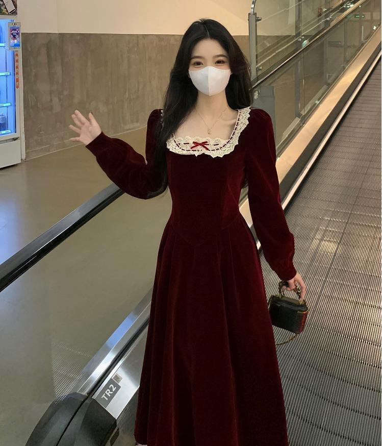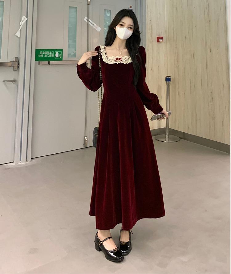 【大きいサイズ有】 レディース ワンピース レース 春 秋冬 新品 長袖 ロング レッド