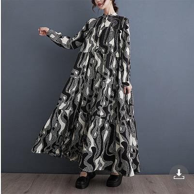 【大きいサイズ】 レディース ロング ワンピース 春 秋冬 新品 長袖 シャツ ゆったり