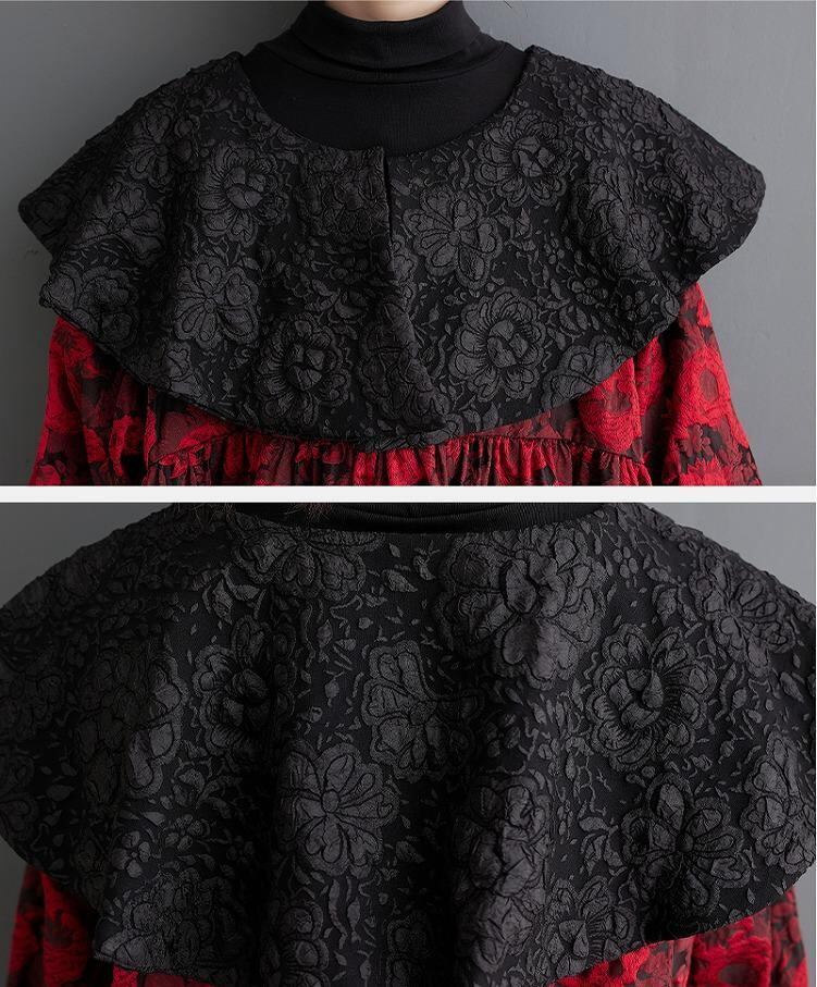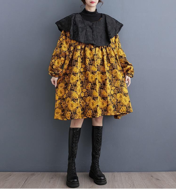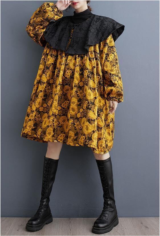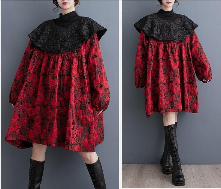 【大きいサイズ】 レディース ワンピース 襟付き 春 秋冬 新品 長袖 ビッグ襟 レッド イエロー