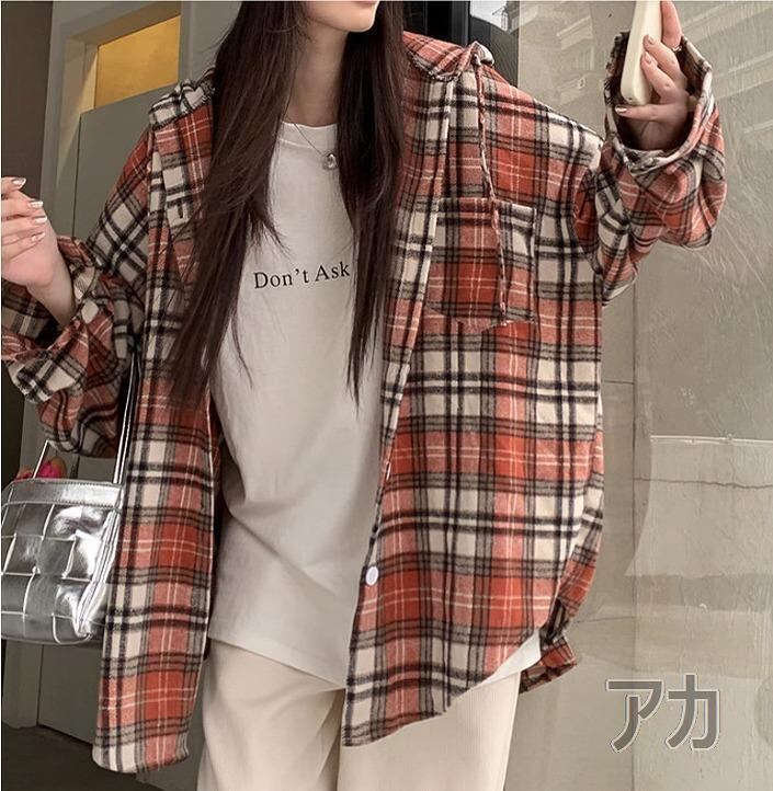 【大きいサイズ有】 レディース トップス シャツ 春 秋冬 新品 長袖 パーカー フード チェック柄