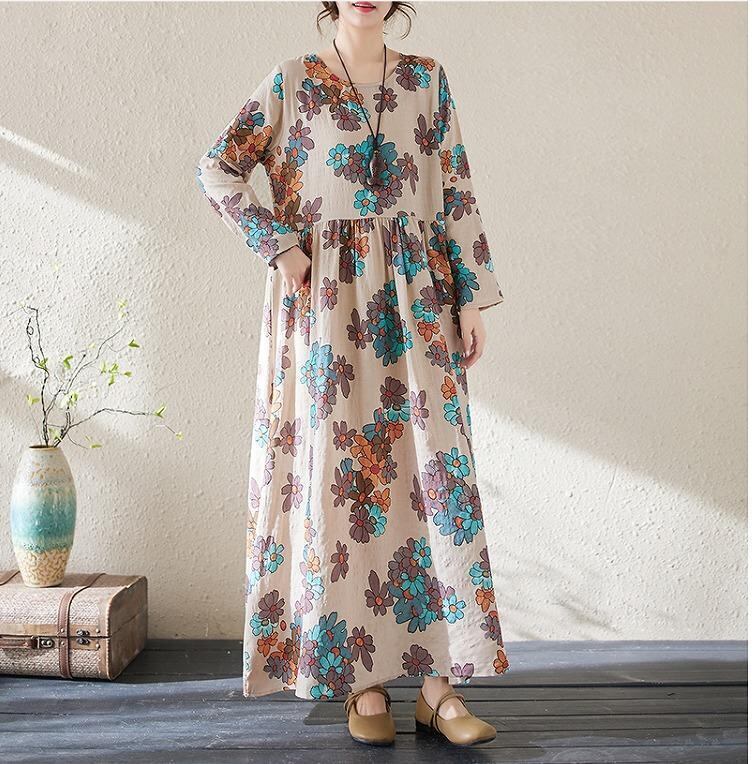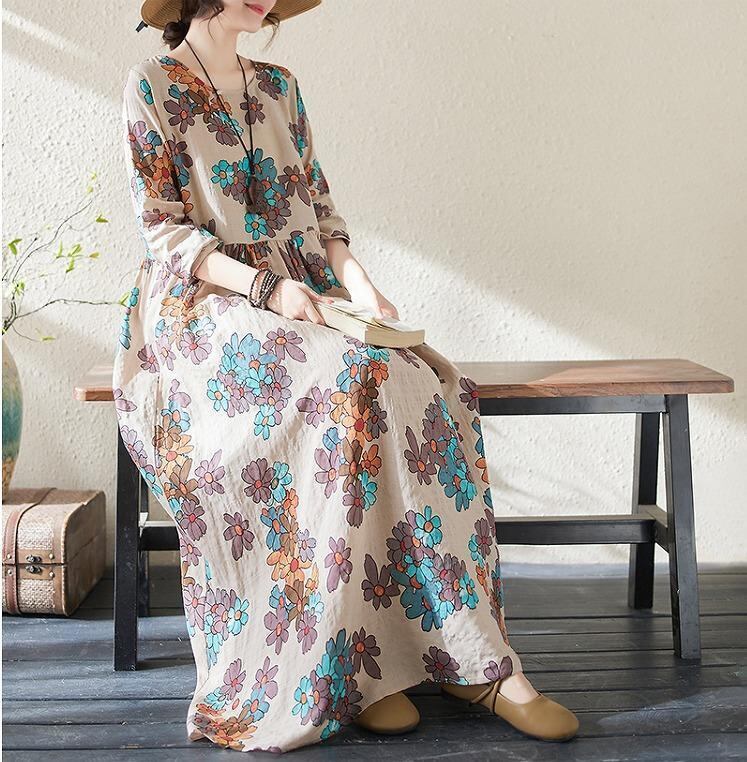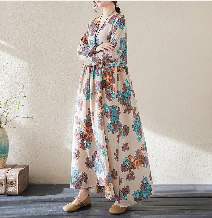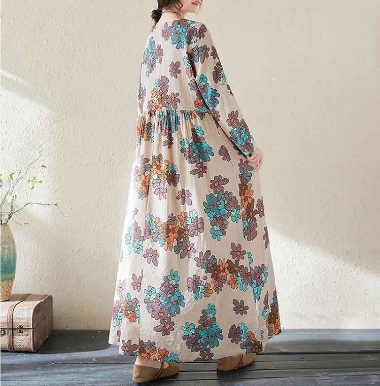 【大きいサイズ】 レディース ロング ワンピース 春夏 秋 新品 長袖 花柄