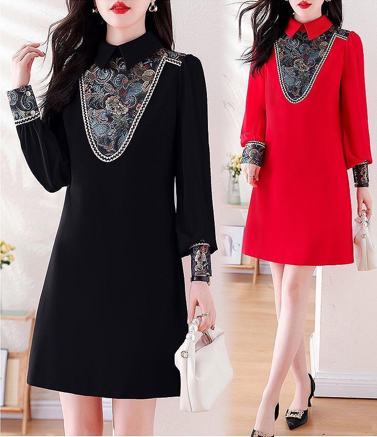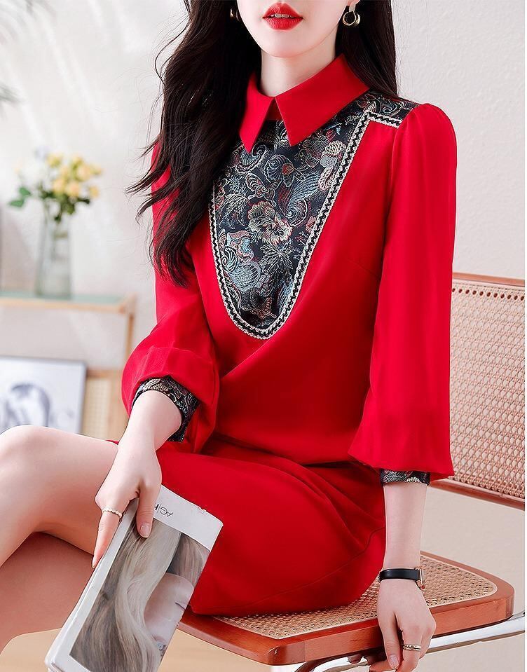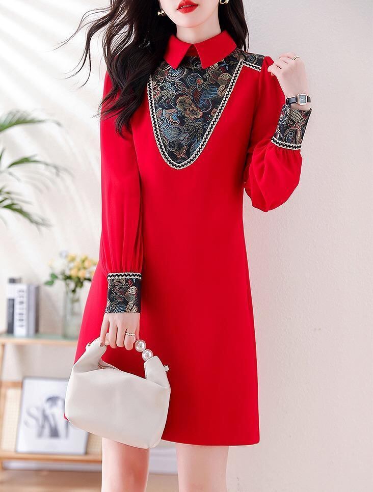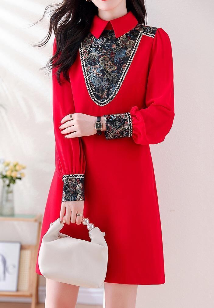 【大きいサイズ】 レディース ワンピース 春夏 秋 新品 長袖 レッド