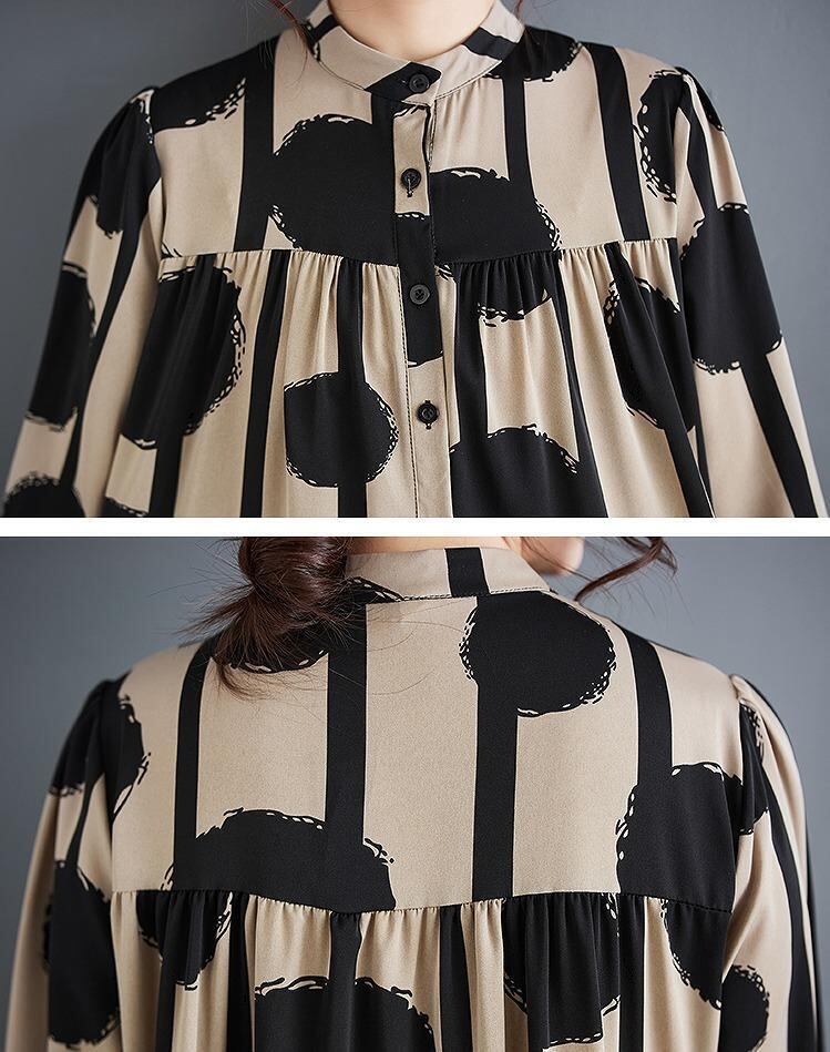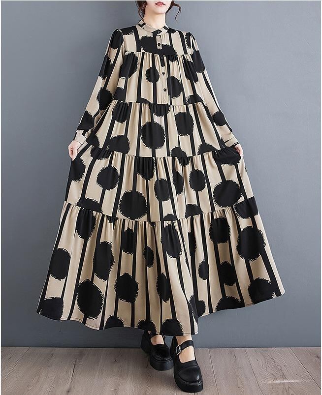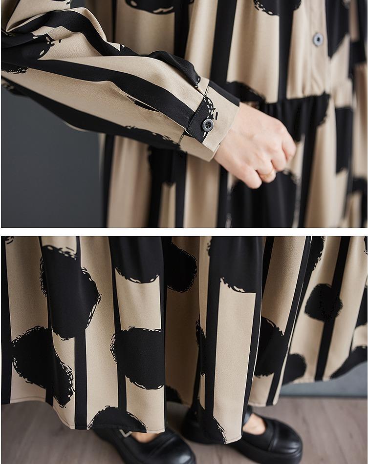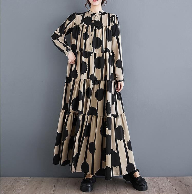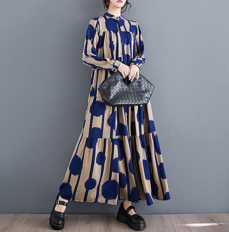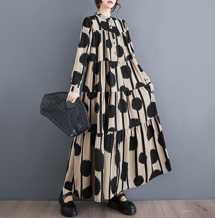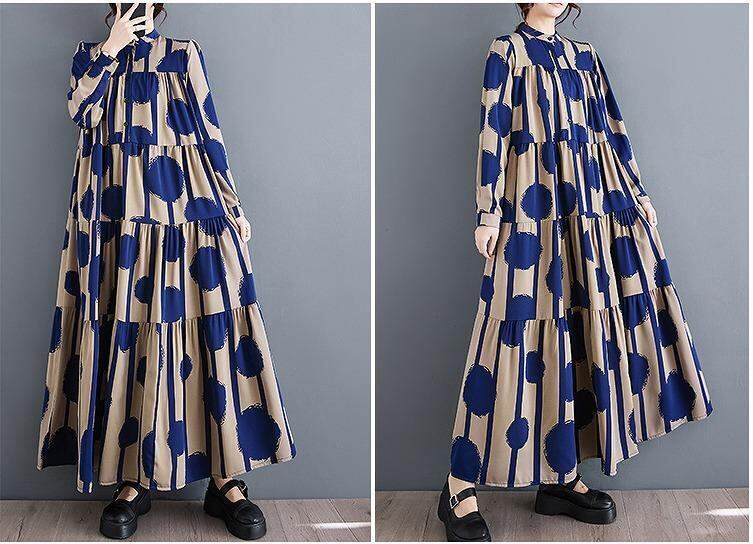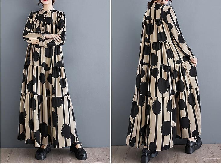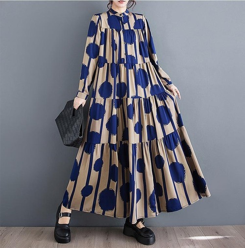 【大きいサイズ】 レディース ロング ワンピース 春夏 秋 新品 長袖 シャツ ドット