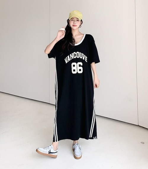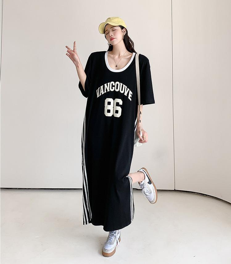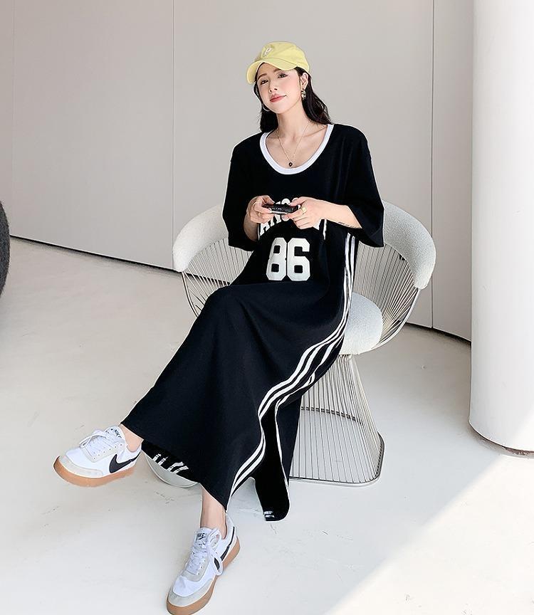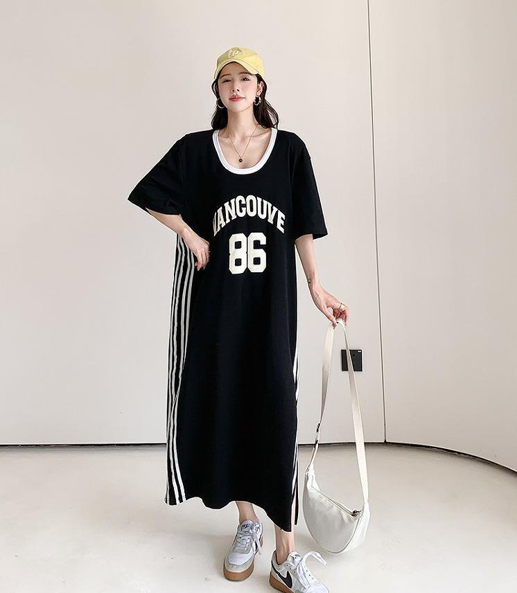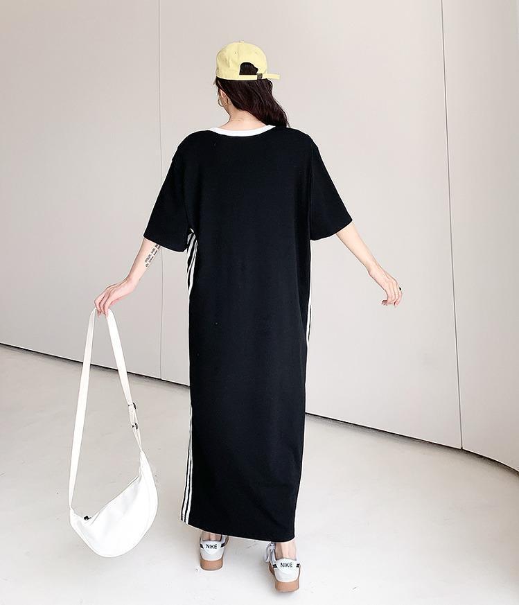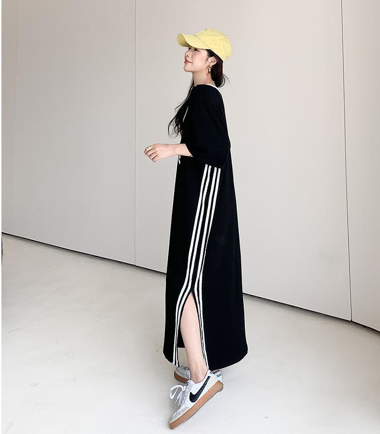 【大きいサイズ】 レディース ロング ワンピース 春夏 秋 新品 半袖 スリット ストライプ