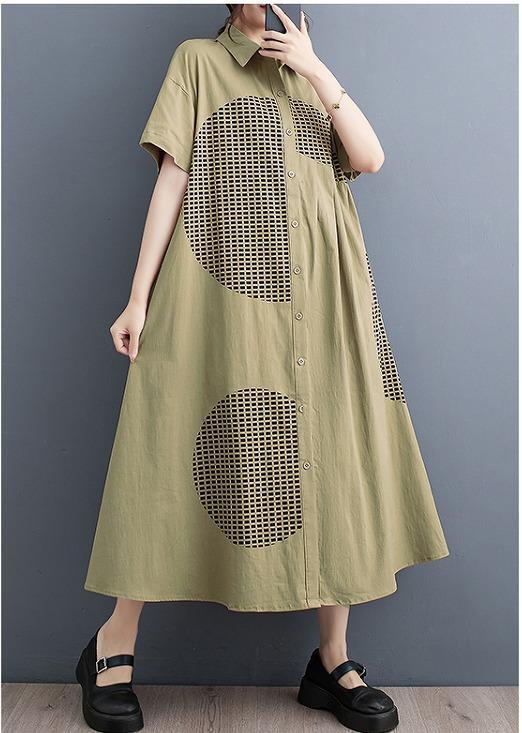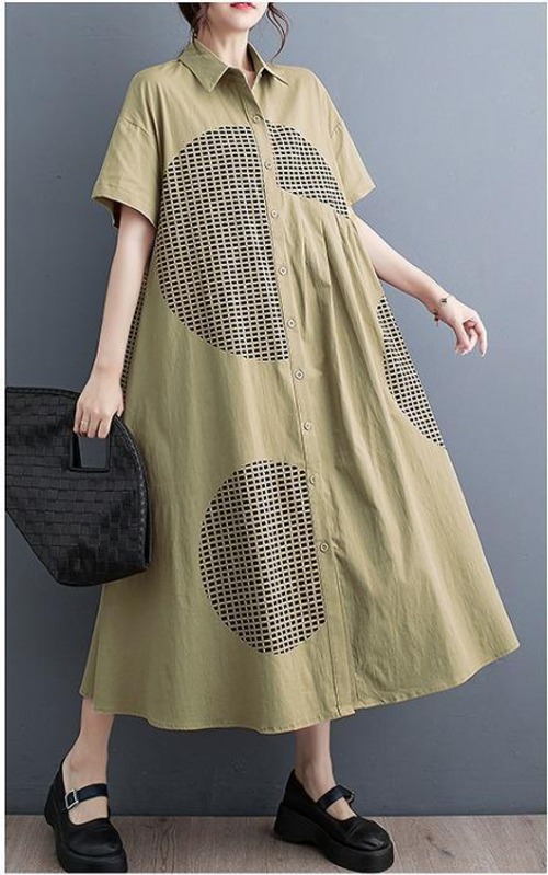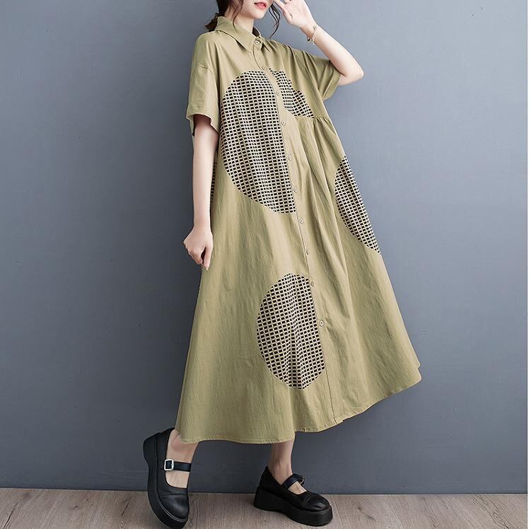 【大きいサイズ】 レディース ロング ワンピース 春夏 秋 新品 半袖 シャツ カーキ