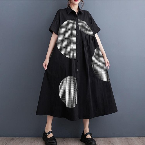 【大きいサイズ】 レディース ロング ワンピース 春夏 秋 新品 半袖 シャツ